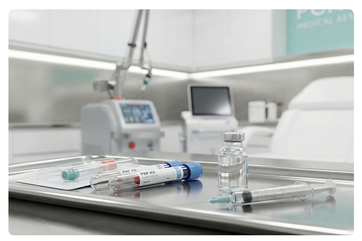 • PRP (Platelet-Rich Plasma): In this method, platelet-enriched plasma from the patient’s own blood is injected into the scalp to stimulate growth factors and activate hair follicles.